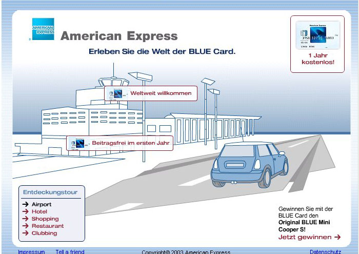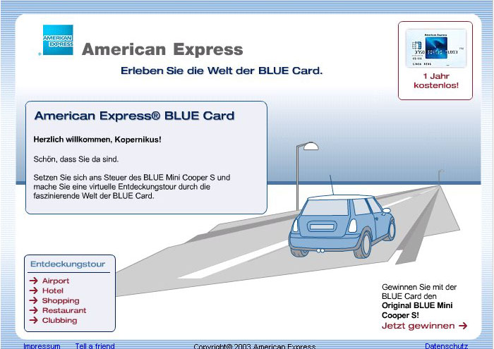 Im Stile eines Abenteuer-Spiels konnte der User verschiedene Stationen ansteuern und in kleinen Story-Bites die Vorteile der BLUE-Card erfahren.