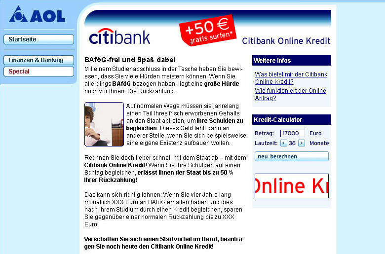 Chancen nutzen, wenn sie sich bieten - alles möglich mit dem Citibank Online Kredit. Und als Bedienungsanleitung schaltete Citibank ein Kredit-Special bei AOL.