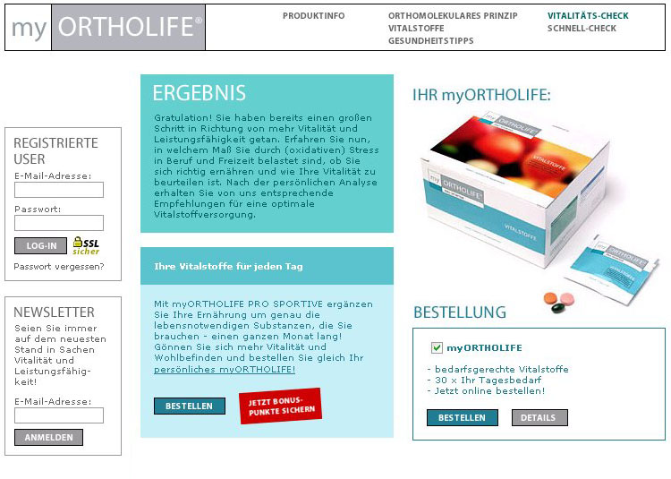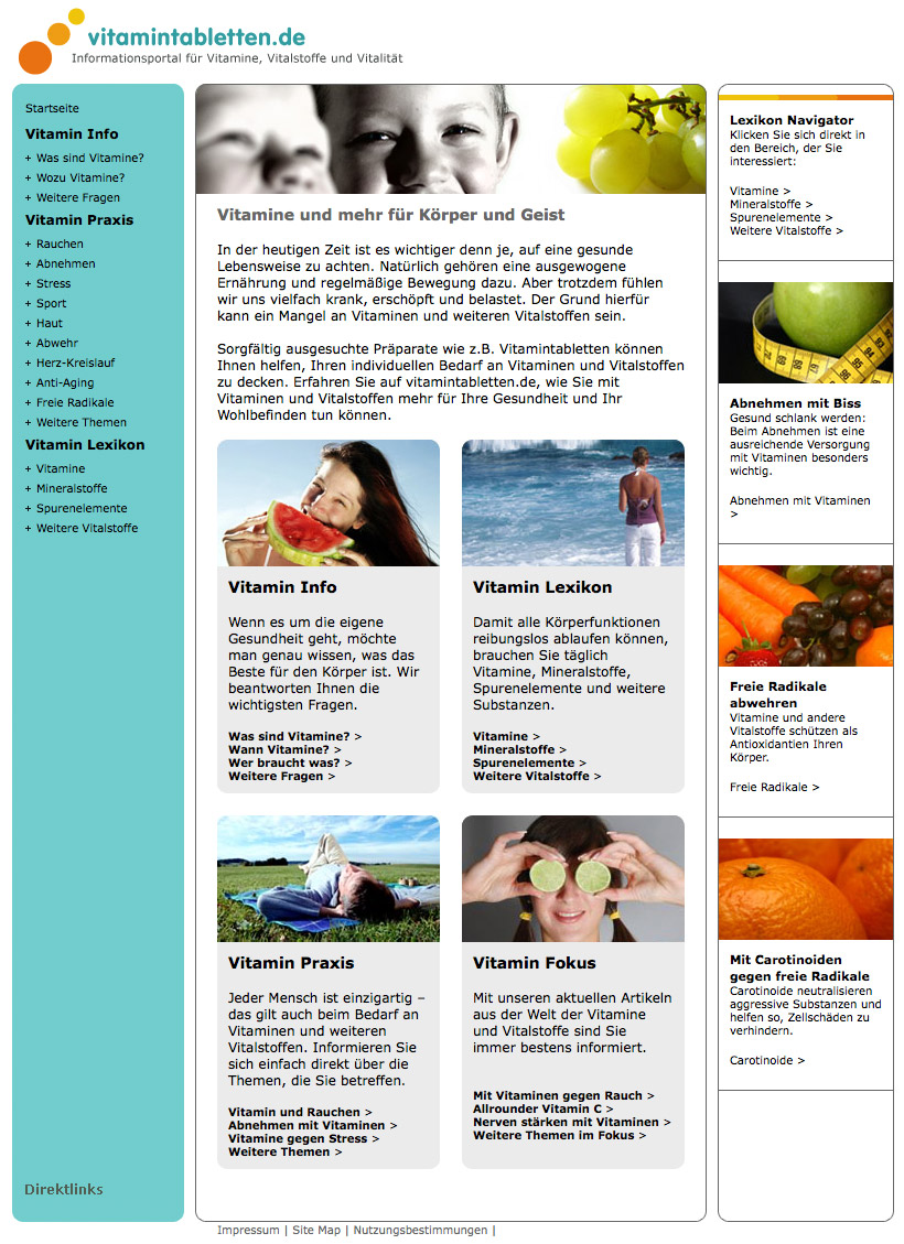 Ein Nährstoff-Finder und umfassende Informationen zur orthomolekularen Medizin eröffneten dem User dem Web zum individuellen Vitalstoff-Paket.
