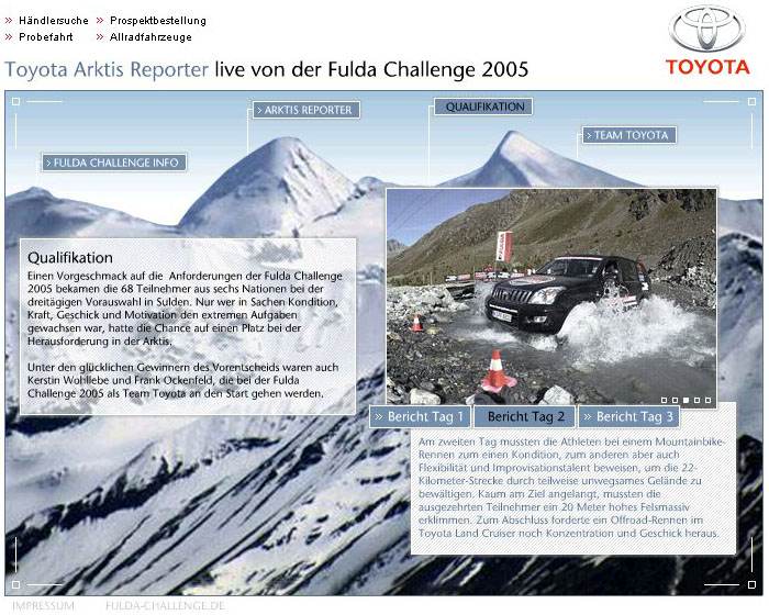 Bei der „Fulda-Challenge” sandte Toyota zwei Reporter mit in die Arktis, die auf dieser Website über ihre Abenteuer berichteten.